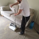 We use the Envirodri and Host dry carpet cleaning systems which involve sprinkling a cleaning powder (microsponges) that have been slightly moistened with detergent and wetting agents over the area to be cleaned. We then use a specialist machine with counter-rotating brushes to agitate the powder deep into the carpet pile. The powder absorbs dirt and deodorises the carpet. The next step is vacuuming the floor thoroughly, leaving behind a dry, clean carpet which can be used immediately.